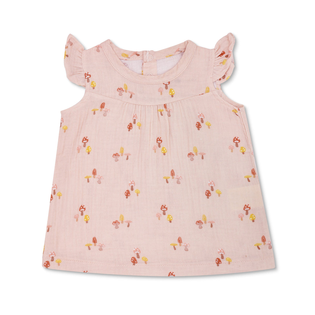 Muslin Flutter Sleeve Dress - Mini Mushroom